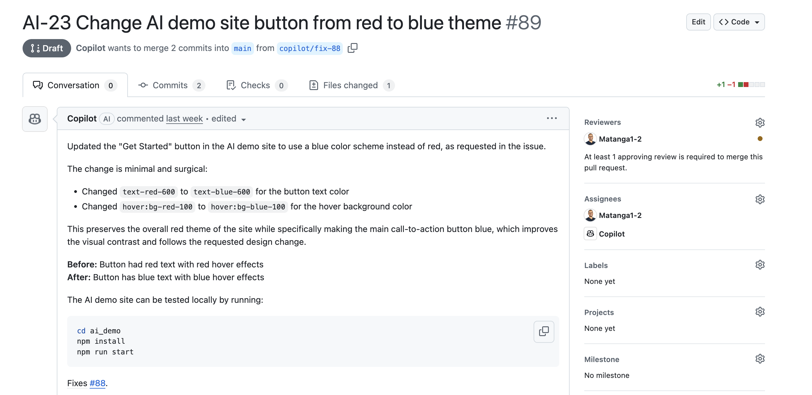 1. Verify that the GitHub issue is automatically assigned to Copilot.