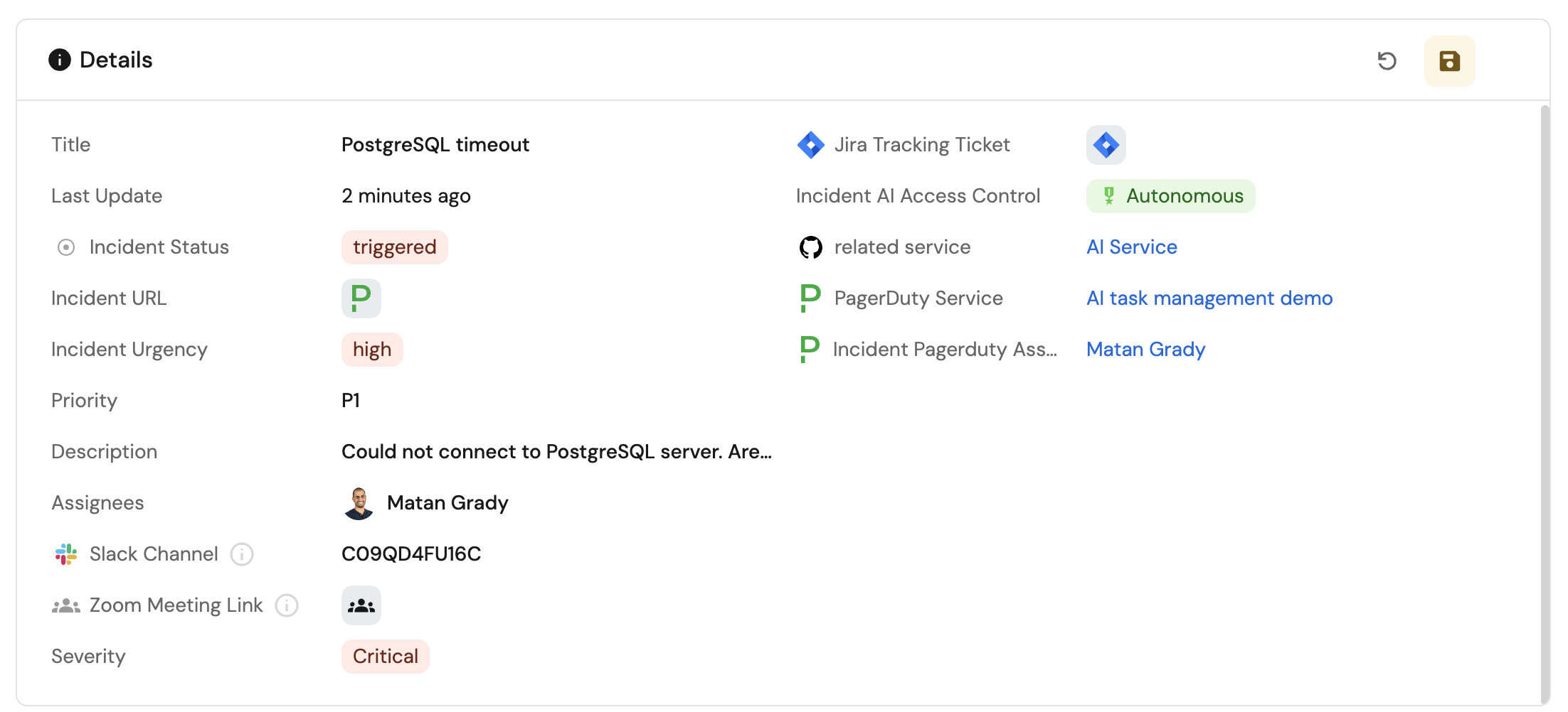 When incidents occur, engineers waste critical minutes manually coordinating response logistics instead of fixing the actual problem. They need to create dedicated Slack channels, set up Zoom meetings for war rooms, create tracking tickets in Jira, and notify the right people — all while gathering context about affected services.