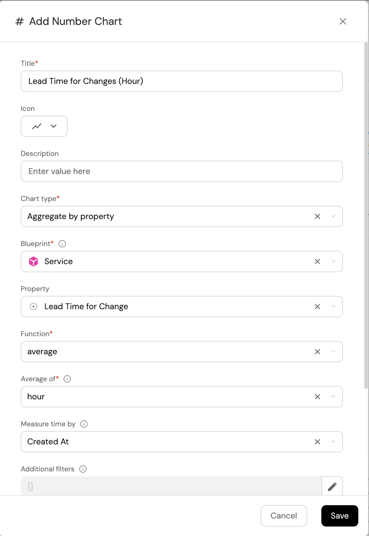 2. Title: Lead Time for Changes (Hour), (add LineChart icon).