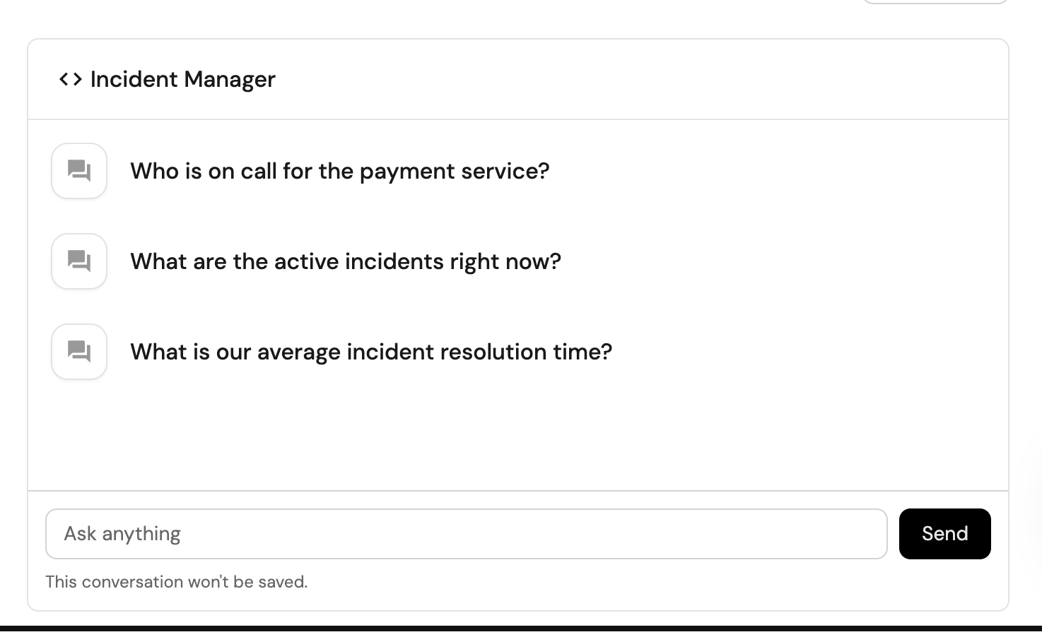 Here are some questions you can ask the Incident Manager agent: